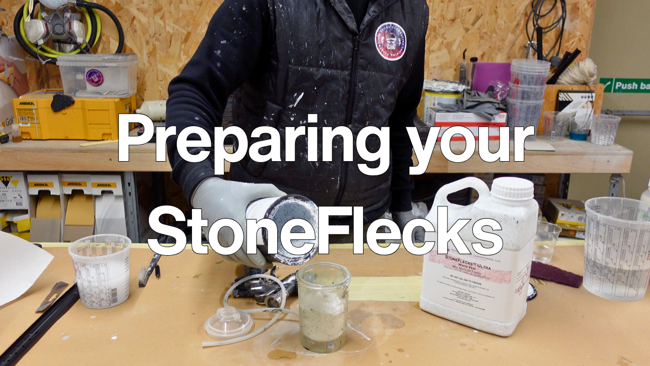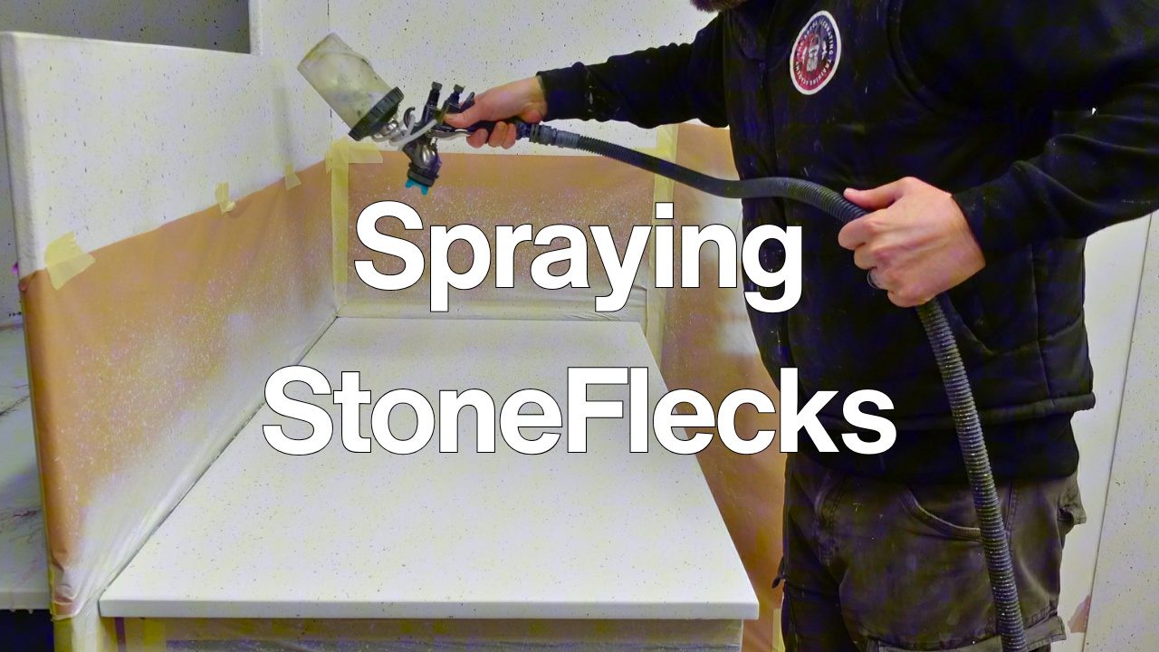 Learn how to spray granite kitchen worktops using the Hawk Lab StoneFlecks system.Â