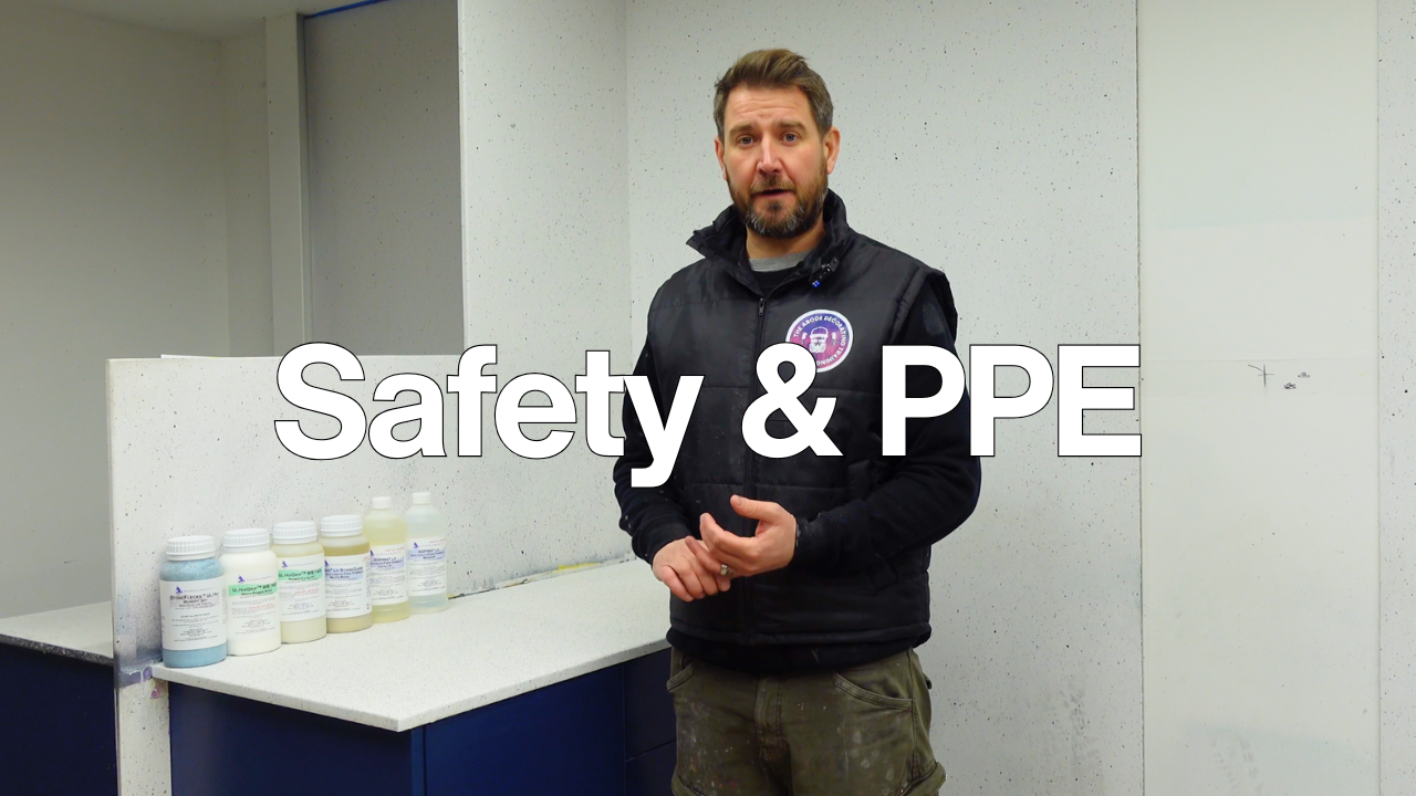Learn how to correctly prepare and apply primer to kitchen worktops as part of the spray granite system. You’ll learn how to mix the primer with the appropriate catalyst, apply it evenly by roller, and use force drying techniques to safely speed up the drying process while maintaining proper adhesion and finish quality.